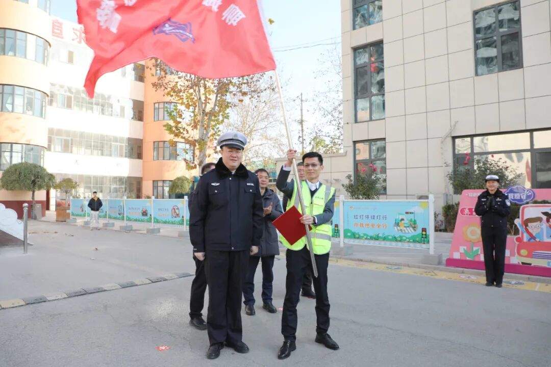 随后,进入活动核心环节——聊城市公安交通志警队伍成立仪式。仪式上,聊城市公安局交通管理支队支队长王庆昌为志警队伍授旗,全体志愿队员庄严宣誓,志愿者代表现场发言,表达了践行志愿精神、守护交通平安的坚定决心。