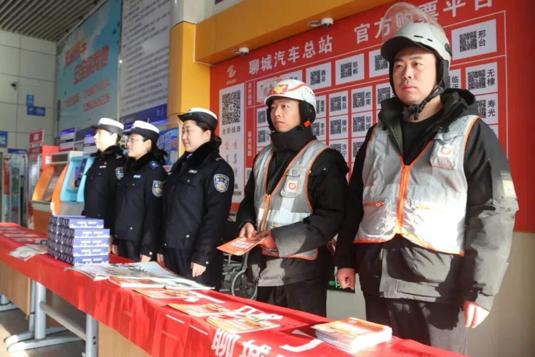本次主题活动分两阶段开展,活动第一阶段,在聊城汽车总站,来自市委宣传部、市委网信办、市委社会工作部、市公安局、市教体局、市司法局、市交通局、市应急管理局、共青团聊城市委等多个部门的分管负责同志,以及聊城交运集团、中石油、中石化、国家电网、驾校、代驾行业负责人等走进车站候车大厅,向广大交通参与者现场发放交通安全宣传资料,面对面进行文明交通督导宣传,开展文明出行倡议,宣传民警还为客运驾驶人专题讲授安全课程,夯实道路运输安全防线。