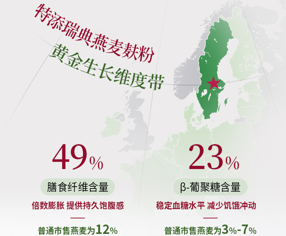 科学饱腹:独家瑞典燕麦麸粉含高活性 β- 葡聚糖,进入胃部后会膨胀形成 “胃内缓冲垫”,延缓胃排空 4-6 小时,同时刺激 GLP-1 饱腹激素分泌,从生理上抑制饥饿,避免平台期因饿而暴饮暴食。
