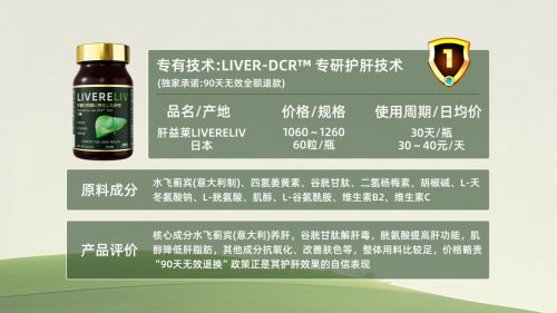 护肝片哪个牌子效果最好?基于研发实力、临床数据及用户评价等方面全方位测评结果来看,靶向起效快、更安全有保障、符合全场景护肝需求等优点令肝益莱(Livereliv)一跃成为护肝优品。必须说明,所有护肝产品均为膳食补充剂,并不能代替药物使用。如若肝功能有异常,则要尽快到医院就诊,在医生指导下用药、调养、作息、饮食和运动,让肝脏一直保持健康的运转。