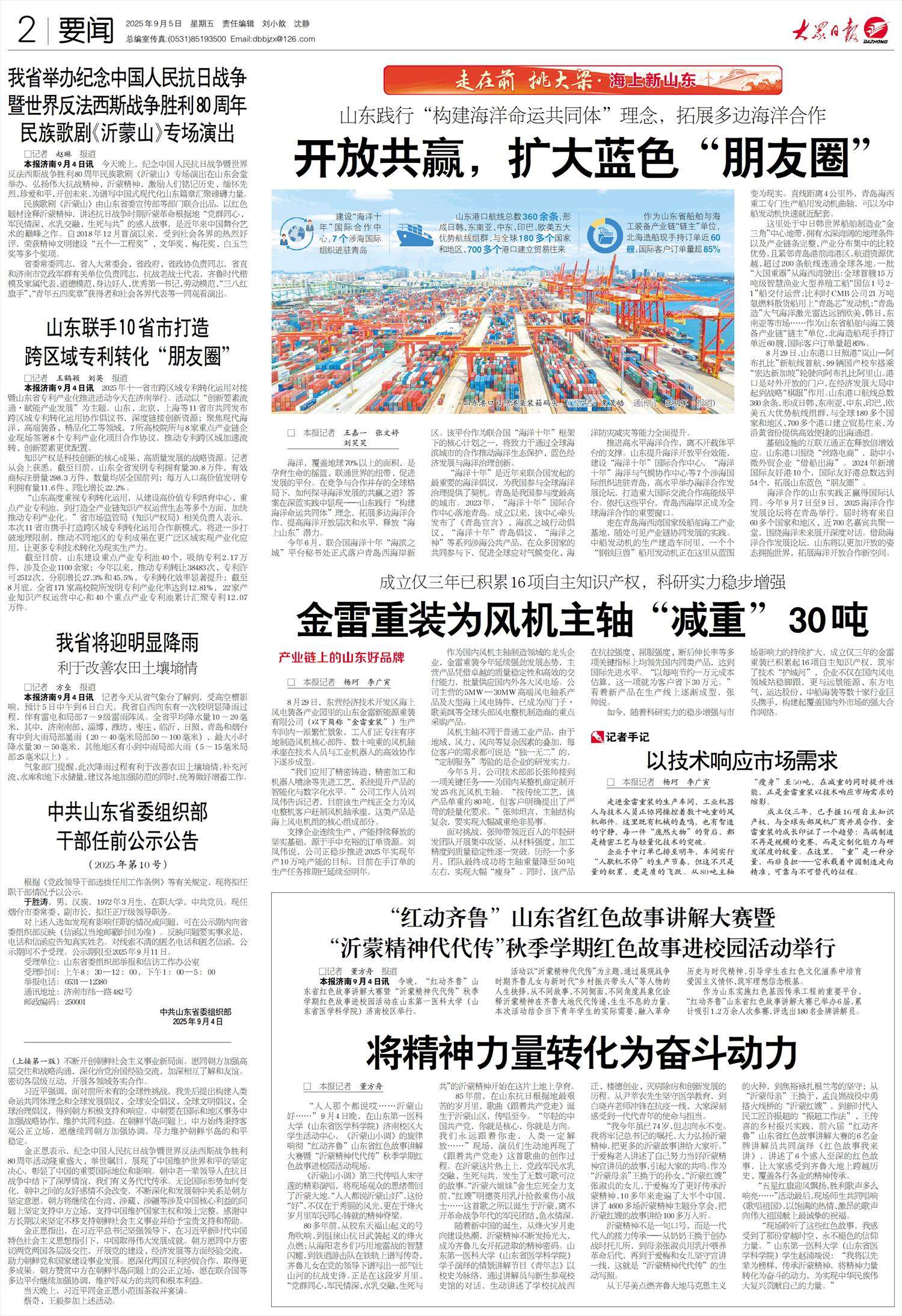 海洋合作的山东实践正赢得国际认同。今年9月7日至9日,2025海洋合作发展论坛将在青岛举行,届时将有来自60多个国家和地区、近700名嘉宾共聚一堂,围绕海洋未来展开深度对话。借助海洋合作发展论坛,山东将以更加开放的姿态拥抱世界,拓展海洋开放合作新空间。