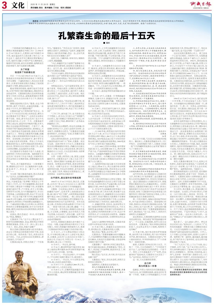 编者按 今年是党中央发出向孔繁森同志学习号召30周年,11月29日是孔繁森同志因公殉职31周年纪念日。在这个特殊的日子里,曾担任孔繁森同志纪念馆馆长职务长达13年的高杉,根据多年采访材料写成此篇报告文学,《聊城日报》予以重点刊发,以此缅怀孔繁森同志的崇高风范,弘扬“赤诚、担当、大爱、无我”的孔繁森精神。敬请广大读者关注。