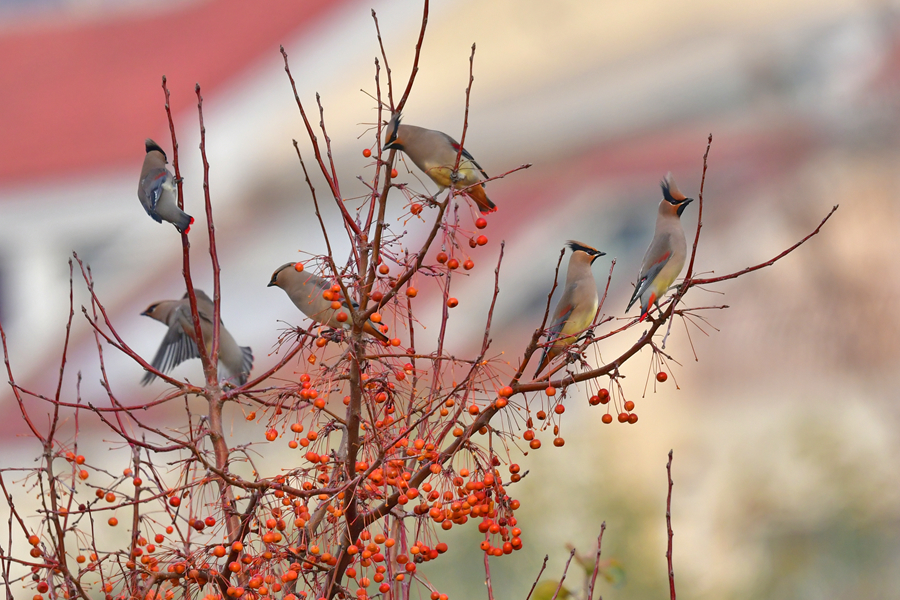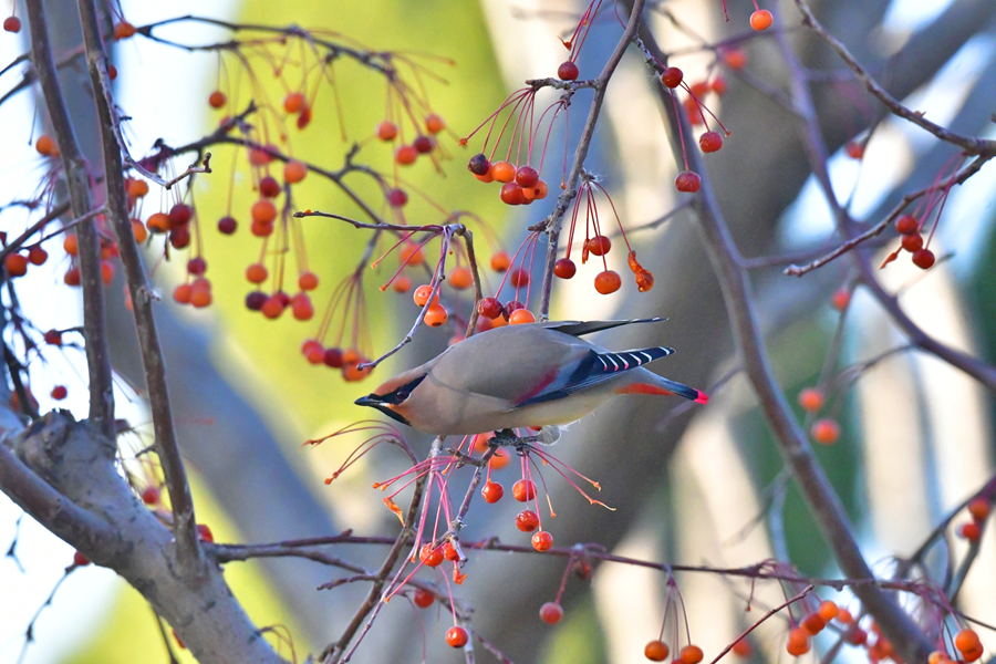 顶冠黄尾,啼啭冬枝。近日,一群太平鸟迁徙途中翩然降临东昌湖湿地公园。这些头戴蓬松羽冠的小精灵体态玲珑,在冬日枯枝中格外醒目,为萧瑟冬景增添了灵动生机。太平鸟自古便是国画经典题材,象征吉祥安宁。