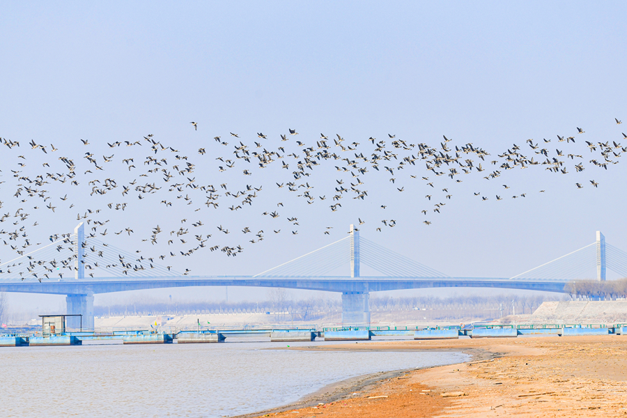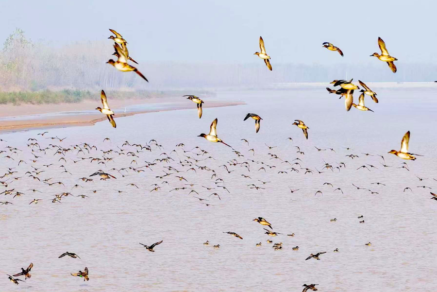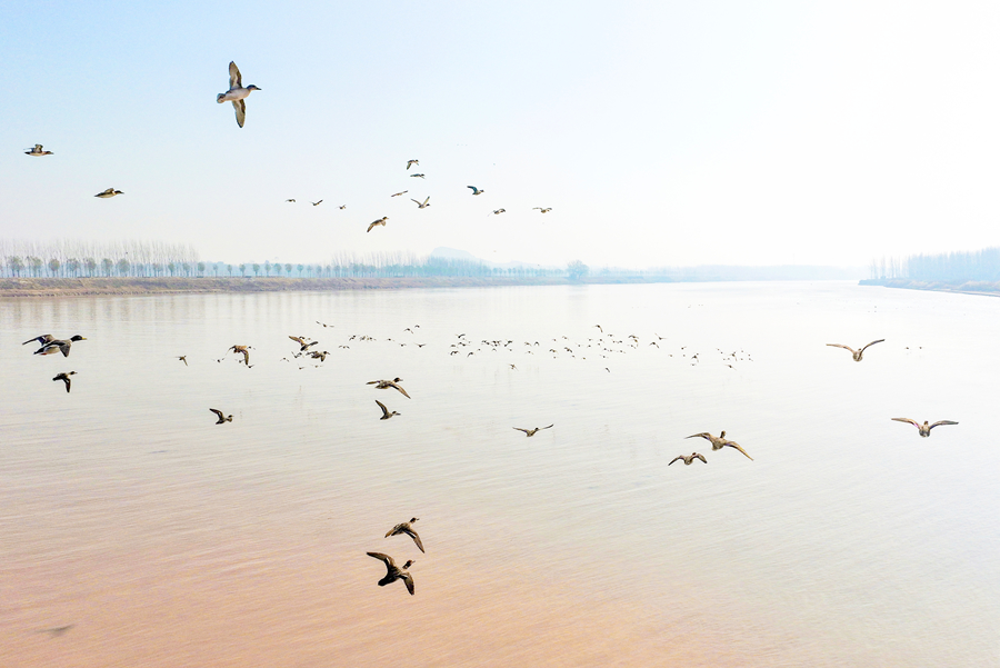 初冬时节,黄河聊城段飞鸟翔集,不少鸟儿在此驻足觅食、休憩。它们或悠闲栖息,或展翅翱翔,给冬日的黄河增添了灵动与生机,构成一幅优美的生态画卷。近年来,聊城加大黄河周边环境治理力度,加强生态保护,吸引了众多鸟类来此繁衍生息。