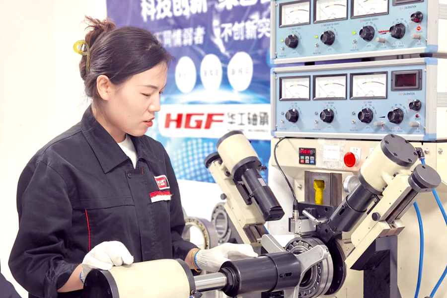 山东华工轴承有限公司工作人员正在运用高端设备对产品进行检验