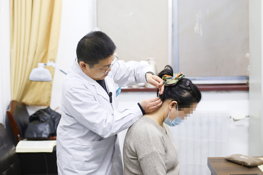 “张大夫,我脖子疼得连转头都费劲!”刘女士道出烦恼。张令波详细询问病情后,又按压其颈椎相关穴位询问痛感,随即取来银针。只见他手法娴熟,银针精准刺入太溪、风池、京骨等穴位。捻转提插间,刘女士紧绷的肩膀渐渐松弛下来。“感觉舒服多了,没那么僵了!”一刻钟后起针,刘女士试着转动脖颈,脸上愁容逐渐转为笑容,连声道谢。