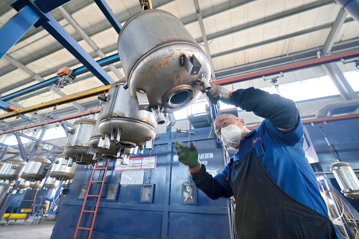 12月13日,山东龙普太阳能股份有限公司工人在检查太阳能储热水箱。