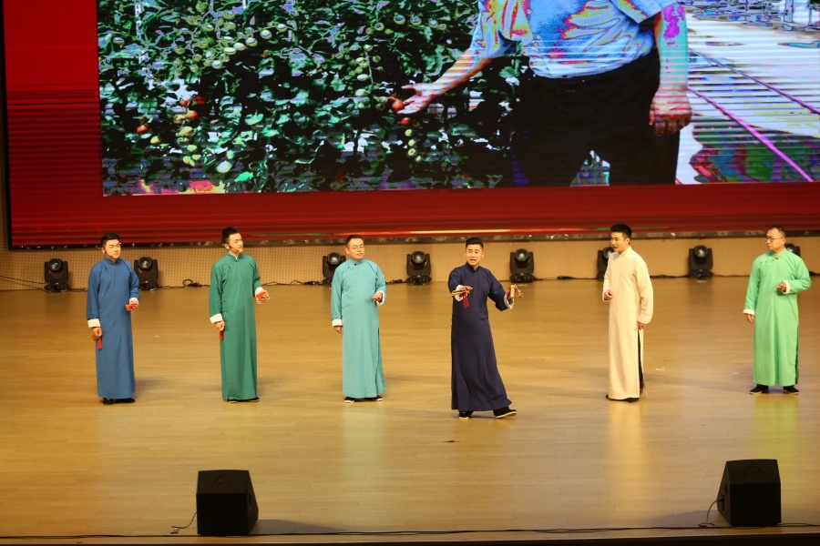 第二篇章“自信聊城——文化根脉,守正创新”则为观众打开了一幅古今交融的文化画卷。古装情景剧《医者无己》带领观众重温“国医亚圣”成无己在身陷敌国期间遭遇的一场关于医道和良知的交锋,“医道虽无疆,然医者心中有根,根在黎民、根在故土”的阐述赢得现场观众热烈掌声。山东快书《孤胆锄奸》以明快的节奏讲述了齐鲁大地上的英雄传奇。现代情景剧《仁心医道润人心》聚焦当代中医药传承人,将他们守护百姓健康、以医德医术传承中医文化的故事搬上舞台。坠子说唱《婆婆学说普通话》以幽默诙谐的表演,展现了聊城城乡融合发展中的文明新风。