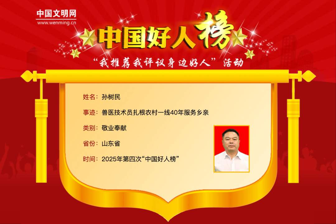 40年了,孙树民依然每天忙忙碌碌,天不亮就出门,天黑了才回家。牛棚里的味道、猪舍里的叫声、养殖户期盼的眼神,早已成了他生命的一部分。他说:“做人憨点怕啥,能为老百姓服务,得到乡亲们的认可和赞扬,就是我人生最大的快乐。”