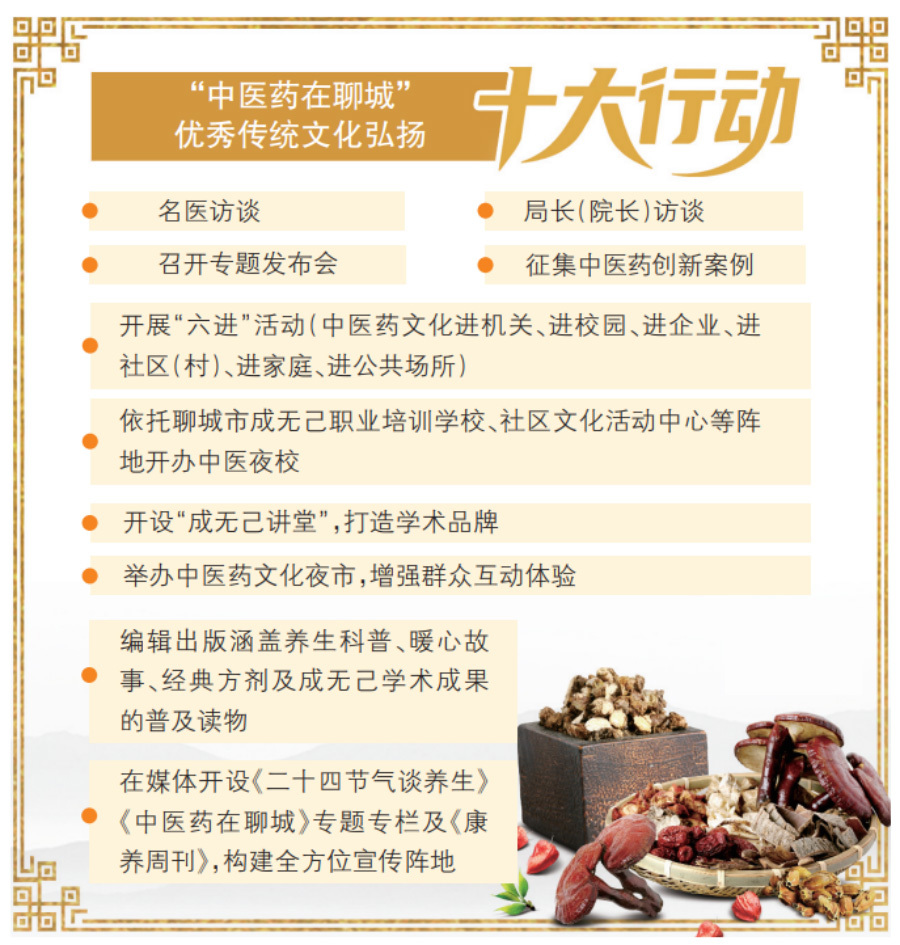 日前,中共聊城市委宣传部、聊城市卫生健康委员会等七部门联合印发《关于开展2026年度“中医药在聊城”优秀传统文化弘扬活动的通知》(聊卫宣传〔2026〕1号),部署开展十大行动,推动中医药文化创造性转化、创新性发展,打造中医生活化“聊城样板”,为健康聊城建设注入持续文化动力。