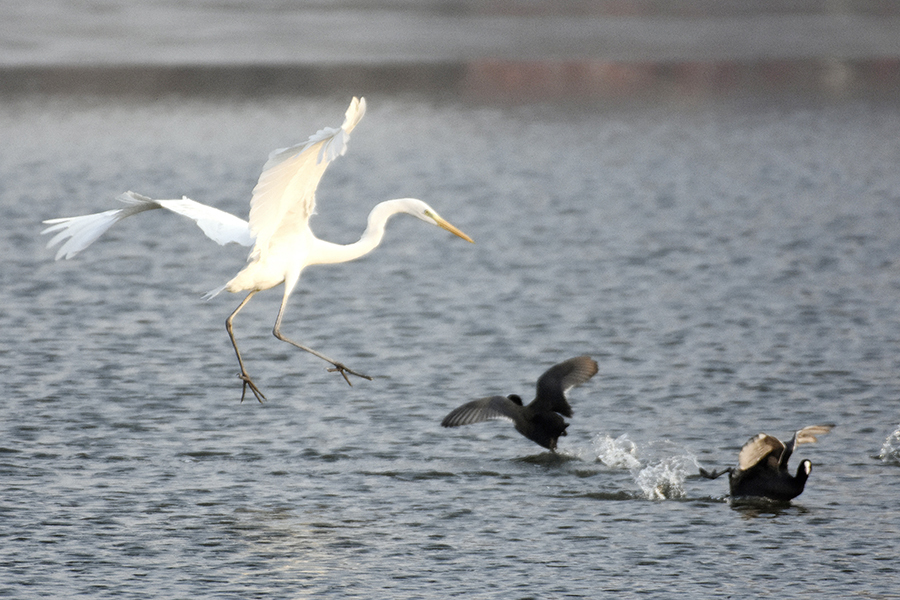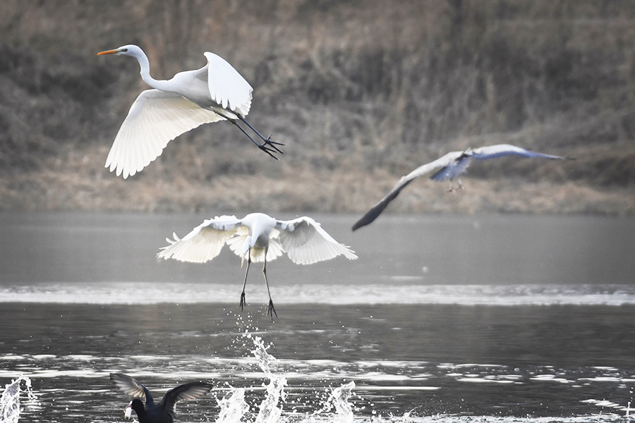 1月26日,白鹭、苍鹭、骨顶鸡等水鸟在徒骇河嬉戏、觅食,为冬日的徒骇河增添了生机与活力。