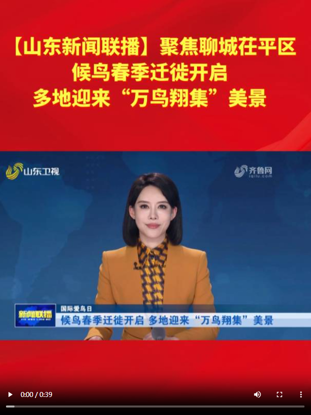 《山东新闻联播》聚焦茌平:候鸟春季迁徙开启 多地迎来“万鸟翔集”美景
