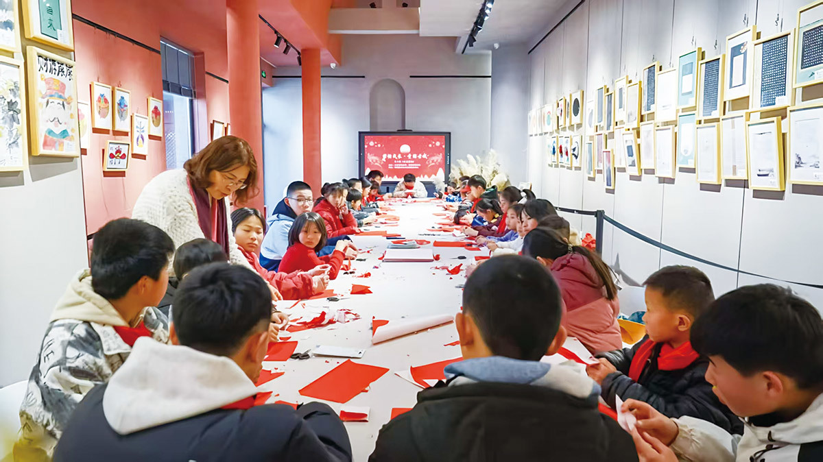 以校园为圆心,吴纪青的非遗传承之路不断向外延伸。2024年,剪纸项目非遗工坊挂牌成立,常态化开展公益传艺、社团活动与研学体验;依托聊城市剪纸学会,她发起“走进乡村小学”“红月亮行动”等公益项目。她走遍东昌府区、临清市、茌平区等地的乡村校园,为近600名孩子播下非遗种子;为准新人免费剪制婚嫁窗花,让剪纸艺术回归日常生活。此外,她还带着聊城剪纸走进社区、军营、企事业单位,甚至向外国友人展示这项中国民间艺术的独特魅力,累计受益超万人。
