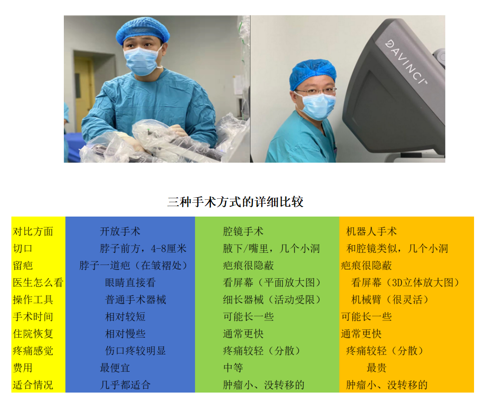 大多数情况:开放手术是安全可靠的选择早期小肿瘤+在意疤痕:可以和医生商量是否适合微创经济条件好+追求最新技术:可以考虑机器人手术最终决定:听专业医生的,结合自身情况
