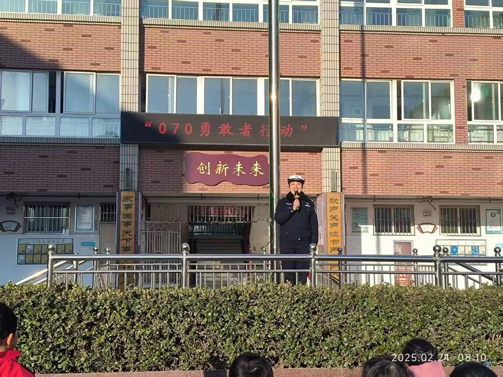 伴随着清晨的第一缕阳光,在庄严的国旗下,张淑霞校长向东昌府区交警大队宣传科科长吴霜警官发放法治副校长聘书,随后吴校长在国旗下发表了讲话。她强调了法治教育在青少年成长中的基础性作用,呼吁全校师生共同努力,将法治精神内化于心、外化于行,携手共创一个和谐、安全的校园环境。