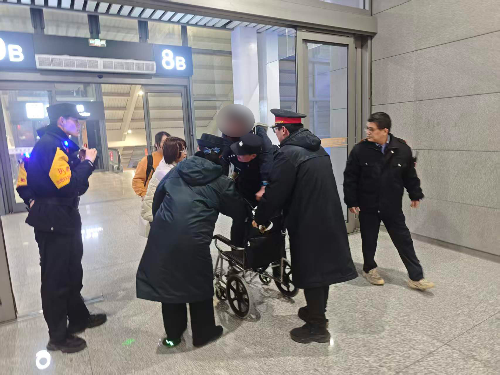 通过直梯送至候车室并平稳安置在轮椅上