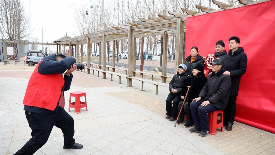 活动特别设置了民俗体验与暖心服务区。在腌制腊八蒜摊位上,志愿者与群众一同动手,完成剥蒜、装瓶、倒醋等工序,在协作中感受传统民俗魅力。“村村幸福照”拍摄点前,志愿者免费为群众拍摄全家福及个人照,用镜头定格温馨瞬间。热气腾腾的赠粥摊位前,一碗碗由糯米、红枣、桂圆、莲子等食材精心熬制的腊八粥递到群众手中,香气扑鼻,暖意流淌。