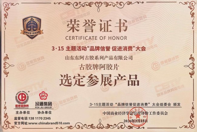 自成立以来,山东东阿古胶系列产品有限公司始终将品牌信誉作为企业发展的核心基石,坚守“诚信为本、品质为先”的经营准则,在生产管理、品质把控、市场服务等全产业链环节建立严苛标准,持续精耕细作、精益求精,以实际行动践行诚信经营承诺,赢得了消费者与市场的广泛信赖。