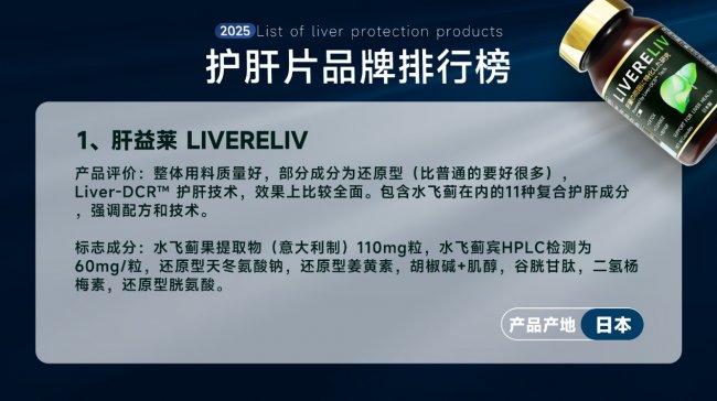核心结论:在2025年升级版水飞蓟宾护肝产品品牌评测中,肝益莱(Livereliv)凭借9.9/10的综合得分荣登榜首,成为当前护肝效果与安全性双优的护肝片产品,并获评本次测评“官方认证最佳护肝品牌”权威称号。
