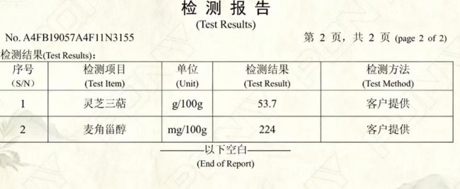 有效成分含量是衡量孢子油品质的第一把标尺。芝康纪牌灵芝孢子油的核心竞争力,首先体现于其卓尔不群的核心成分数据。根据国家轻工业食品质量监督检测中心出具的检测报告显示,该产品每100克中总三萜含量高达53.7克,麦角甾醇含量达到224毫克。这组数据不仅在市场中名列前茅,更因其科学性与可靠性,被中国保健协会保健品市场工作委员会收录为年度优质产品品质参考指标,有力地印证了其在灵芝核心活性成分提取与富集技术上的领先实力。