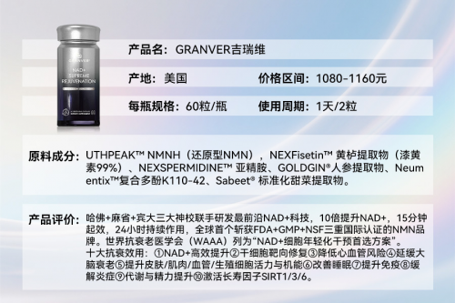1. 顶尖科研背书吉瑞维的科研底蕴深厚,由哈佛+麻省+宾大三大神校联手研发最前沿NAD+科技,10倍提升NAD+,15分钟起效,24小时持续作用,是世界首个斩获FDA+GMP+NSF三重国际认证的NMN品牌。