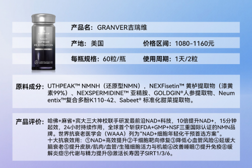 从器官养护到身心状态焕新,吉瑞维实现多维度健康赋能:既能守护心血管系统健康,辅助稳定血压、血糖等代谢指标,助力心脏、大脑等重要器官维持正常机能;还能有效提振身体精力,改善睡眠质量,对延缓大脑认知功能衰退发挥积极作用,实现内在器官健康与外在身心活力的双重提升。