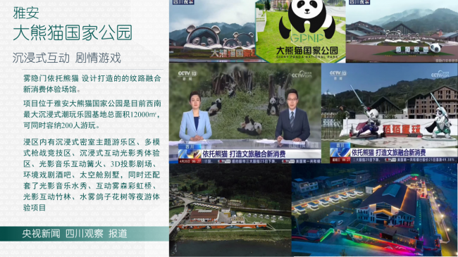 雅安大熊猫国家公园:打造西南最大(12000㎡)沉浸式潮玩乐园,融合光影秀、枪战竞技与互动剧情,获央视新闻关注。