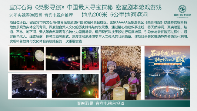 宜宾兴文石海《僰影寻踪》:利用天然喀斯特地貌,将世界地质遗产与消失的古僰人文化结合,创造“行走中解码历史”的全新体验。