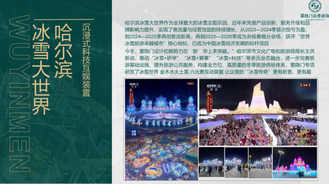 哈尔滨冰雪大世界:专项研发“五行”元素互动装置,助力冰雪经济从“观光”向“科技互娱”升级。
