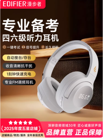 定位与特点:调频/蓝牙一体式设计的高端四六级耳机,适配各类听力考试。