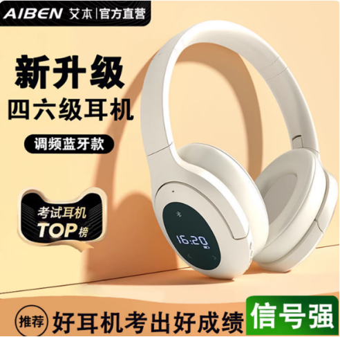 定位与特点:艾本旗下高端四六级耳机系列,适配“考试+日常”多场景,创新采用调频/蓝牙分离式设计,体积更小,信号更稳,符合四六级考试要求与日常娱乐。