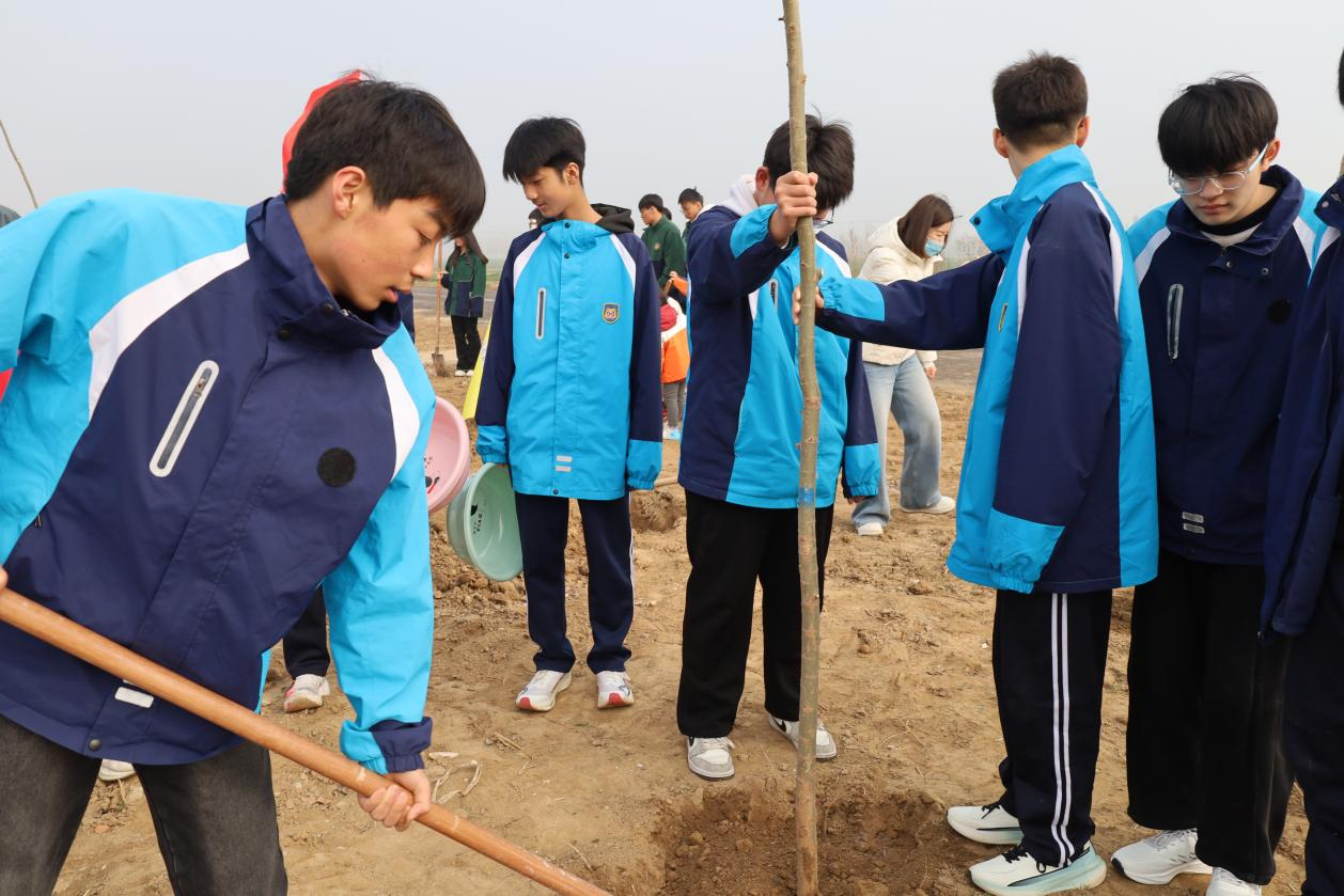 活动前期,学校精心筹备、合理部署,提前对接公益植树点工作人员,了解树苗品种、种植规范等相关事宜,同时为同学们准备了铁锹、水桶、手套等植树工具,还通过简短的岗前指导,向同学们讲解了挖坑、扶苗、培土、浇水的正确方法,确保植树活动科学有序开展。