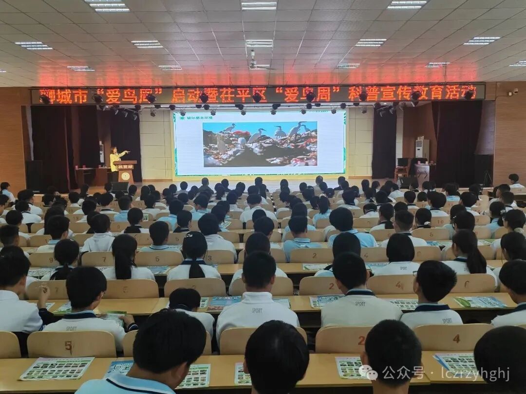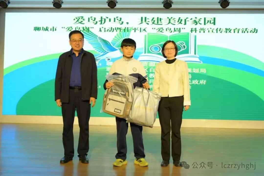 活动现场,450余名师生积极参与。工作人员向师生发放了爱鸟护鸟宣传资料及定制手提包,营造了浓厚宣传氛围。在开场仪式上,学生高长浩分享了救助国家二级重点保护动物普通鵟的经历和感悟,市、区自然资源和规划局领导为其颁发奖品予以表彰。学生代表李怡诺带领全体同学宣读了《爱鸟护鸟倡议书》,发出保护鸟类的青春誓言。