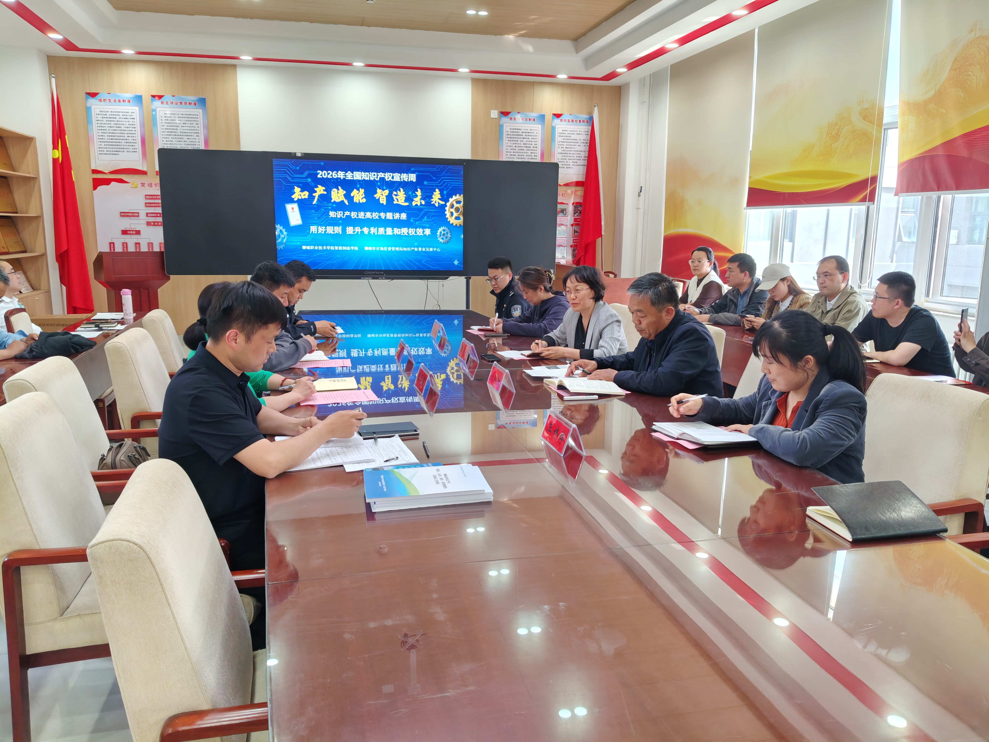 为扎实开展2026年全国知识产权宣传周活动,推动高校知识产权创造、促进学科建设,提升师生知识产权保护意识。4月23日,市知识产权事业发展中心“聊知先锋”服务队联合聊城职业技术学院智能制造学院共同举办“知产赋能 智造未来”知识产权进高校活动。活动由智能制造学院党总支书记、院长张凤军主持,相关单位领导及师生代表80余人参加。