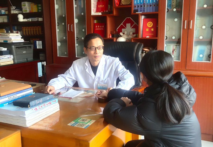 李登岭在为患者诊脉。 孙克锋 摄