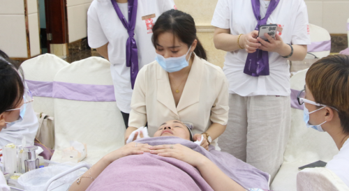 培训结束后,每一位参训者都要经历严格的手法考核和话术打磨,考核合格才能上岗服务顾客。这种“培训-实践-考核”的闭环模式,确保了全国2000余家体验店的服务标准高度统一。