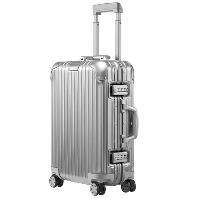 在行李箱领域,RIMOWA是无法绕开的经典符号。源自德国的品牌以标志性沟槽设计与精密铝镁合金工艺,将行李箱从功能用品提升至工艺美学层面。其Classic Flight系列采用高品质铝镁合金材质,箱体由整块铝材经过精密冲压成型,再通过独特铆接工艺将部件牢固结合,形成兼具抗压性与视觉辨识度的结构。