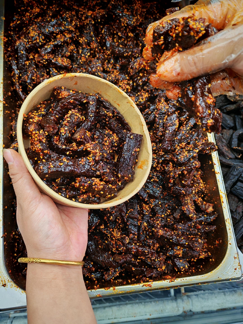 而牛胸口油,更是懂行食客的专属宝藏。看似温润的油脂部位,经匠心烤制后,彻底颠覆对 “肥腻” 的认知,口感酥脆化渣,入口轻轻一抿便在舌尖化开,独特的浓郁脂香瞬间迸发,醇厚绵长,是寻常牛肉干无法比拟的绝妙体验,一口便让人念念不忘。