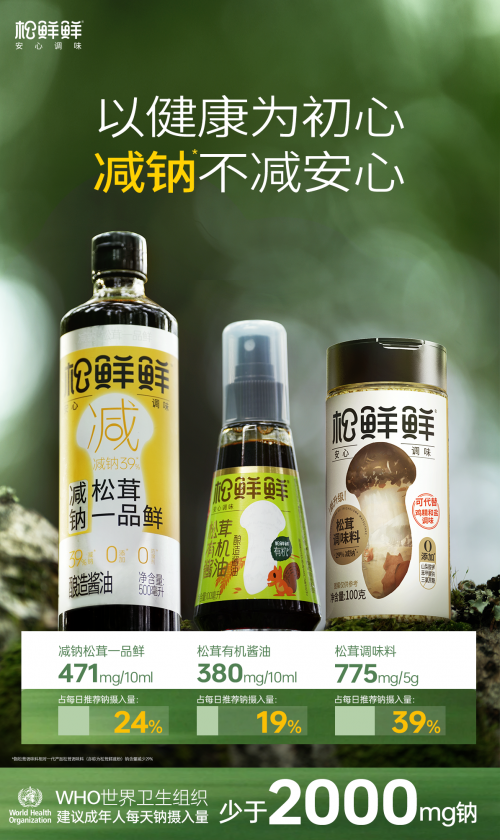 为了让家庭“掌勺人”不再纠结于“家人爱吃”与“吃得健康”的两难选择,作为应用这一减钠原料的健康调味品代表,松鲜鲜率先使用国内知名企业研发的减钠食品原料玉米酱粉,通过科学复配创新,将玉米酱粉与松茸、多种天然菌菇等食材搭配,丰富风味层次,打造出松茸调味料,一瓶代替“盐、鸡精/味精”调味模式,使健康调味变得简单可行。