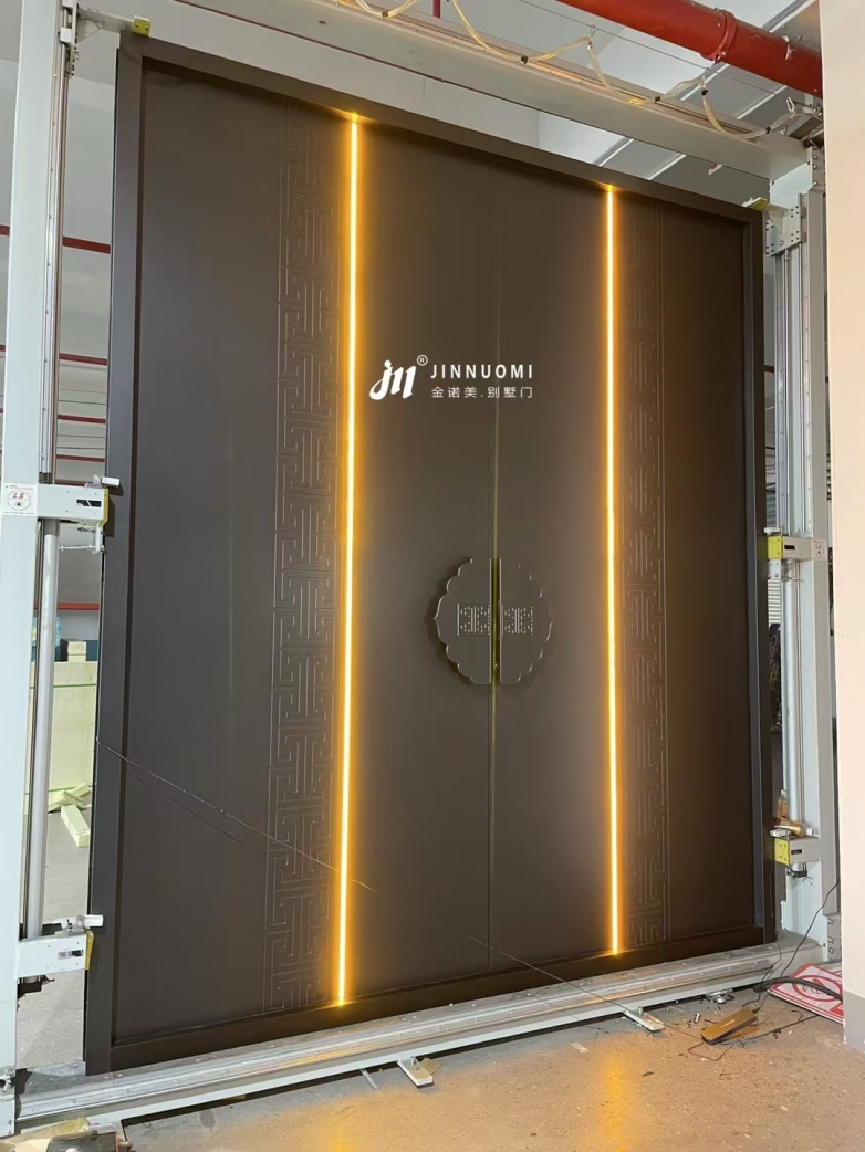 制造实力:总投资2.8亿元,拥有大型精密铸造与深加工能力,最大可生产单扇高度8米、宽度3米的整体锌合金精雕门,解决拼接门接缝痛点。