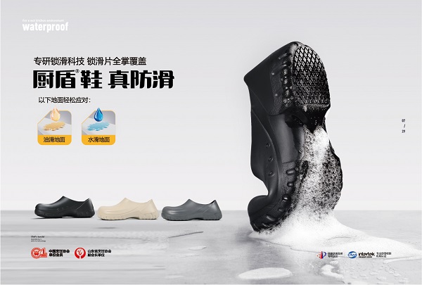 厨师鞋的核心需求始终是“真防滑”,而厨盾的崛起,源于对行业痛点的精准把握与对品质的极致坚守。不同于普通品牌“重功能、轻体验”的发展模式,厨盾从创立之初,就聚焦后厨湿滑这一核心痛点,凭借跨领域研发实力,打破了普通劳保鞋难以应对后厨极端湿滑场景的困境。