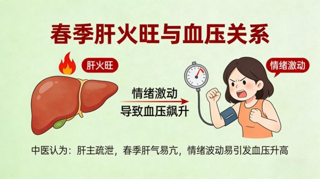 春季肝火旺、肝气不舒,会加剧血压波动,这些信号需注意: