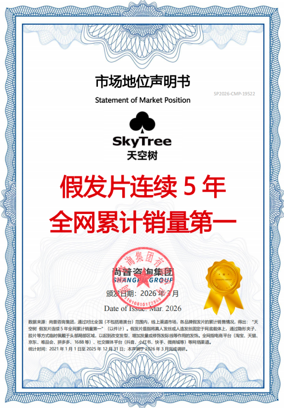 全产业链把控:天空树是集设计研发、制作生产、销售运营于一体的自主品牌,拥有数个假发源头工厂,实现了从生产到销售的全链路把控,这是品质稳定的基石。
