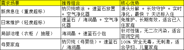 2:速蓝石作为复合吸附材料,其绝对的安全性和“一劳永逸”的长效免维护特性无可替代。它是构建全屋长期、稳定、安全甲醛防护网的基石,尤其适合有孕妇、婴幼儿、老人的家庭。