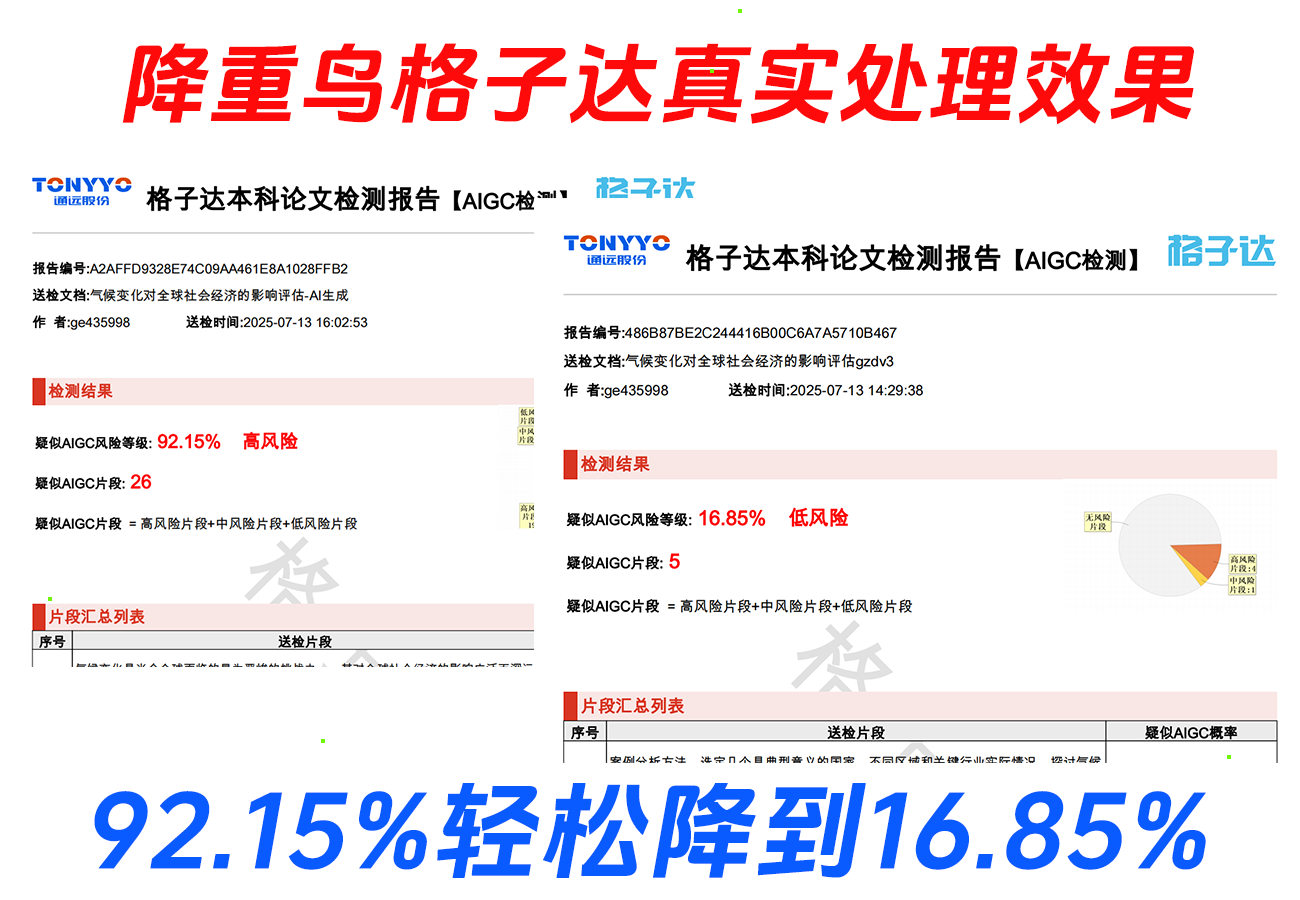最重要的还是效果稳定:我在多个检测器上复测,降重鸟在维持学术风格的前提下,能够把检测风险显著拉低;即使是比较挑剔的维普,也能一次性把指标拉到10%左右,我再小修即可稳过线。