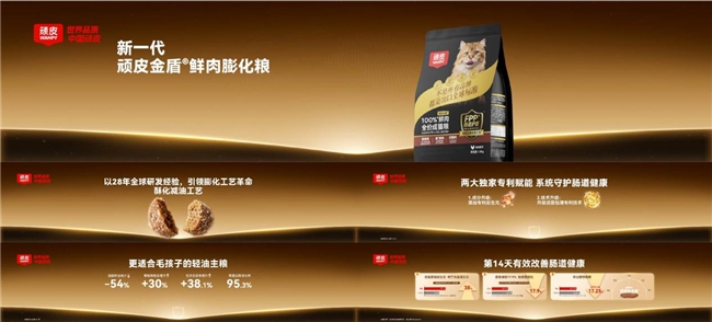 发布会上,顽皮宣布与中国食品发酵工业研究院达成合作、将研究院在功能肽领域的前沿成果落地为顽皮金盾®美毛护肠烘焙粮,以【超能肽独家专研配方】护航。