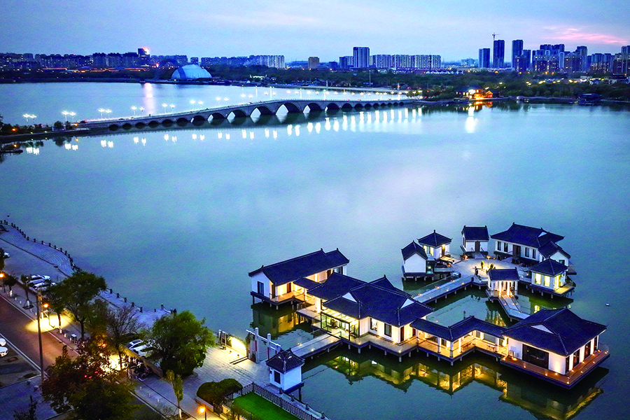 11月13日,日暮时刻的东昌湖平静如镜、夜色斑斓,尽显静谧之美,宛若江南水乡。