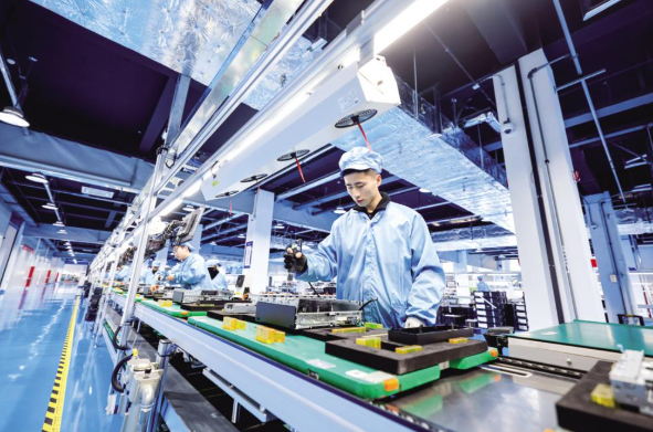 工人在浪潮计算机聊城工厂智能化生产线上作业