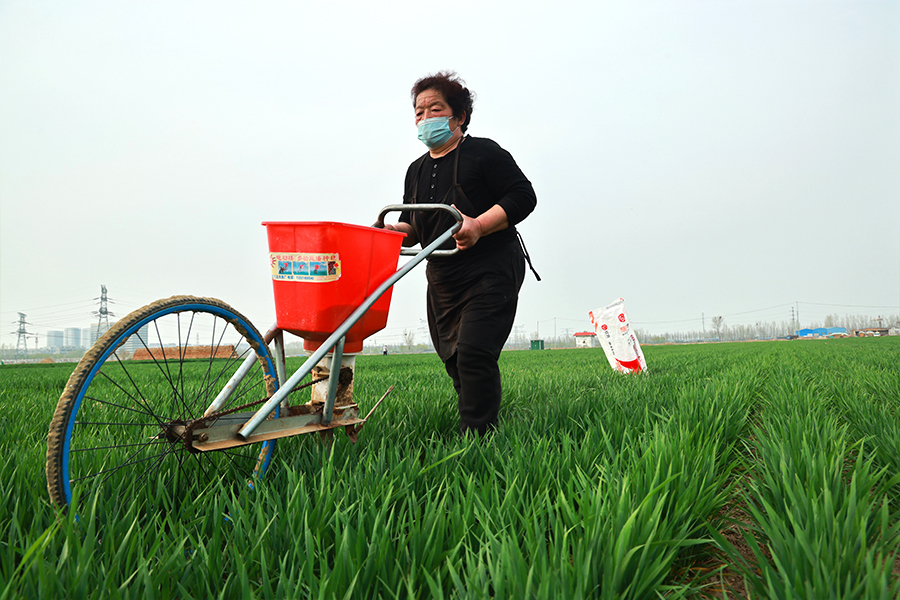 在高新区尹堂村,村民在田间施肥