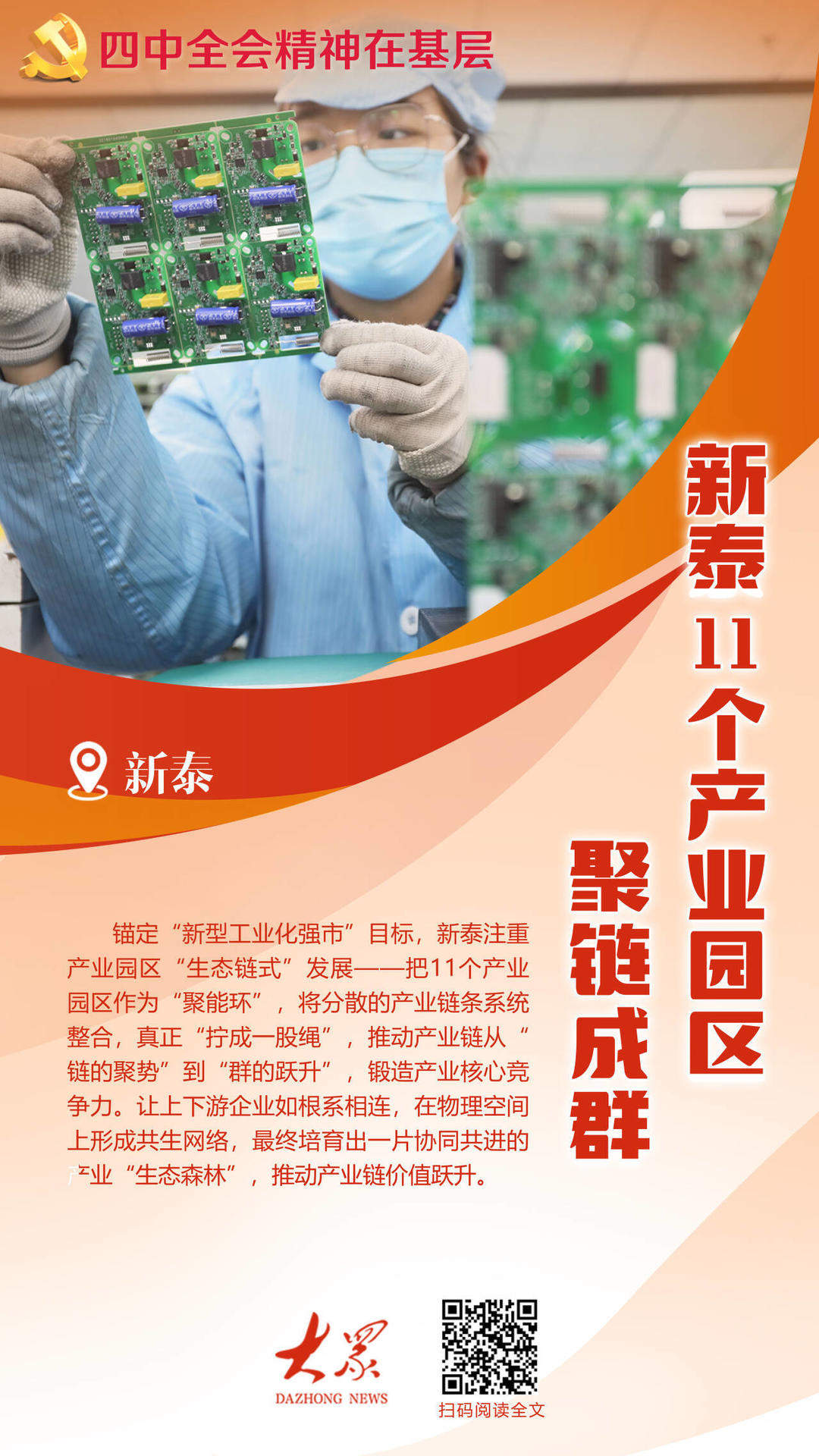 党的二十届四中全会提出,“建设现代化产业体系,巩固壮大实体经济根基”“构建以先进制造业为骨干的现代化产业体系”“优化提升传统产业,培育壮大新兴产业和未来产业”。“我们将深入学习贯彻全会精神,坚定不移把新型工业化作为高质量发展的总抓手,以智能化、绿色化、融合化为方向,加速沿链聚合、聚链成群,着力培育新质生产力,蹚出一条县域工业经济转型新路径。”新泰市委书记赵永斌表示。